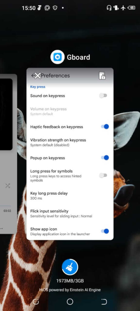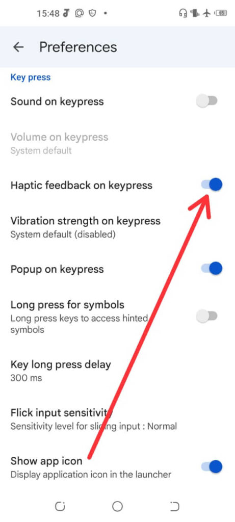 • If you use Gboard as your keyboard app, go to Settings > System > Languages & input > Virtual keyboard > Gboard > Preferences and toggle off Haptic feedback on keypress