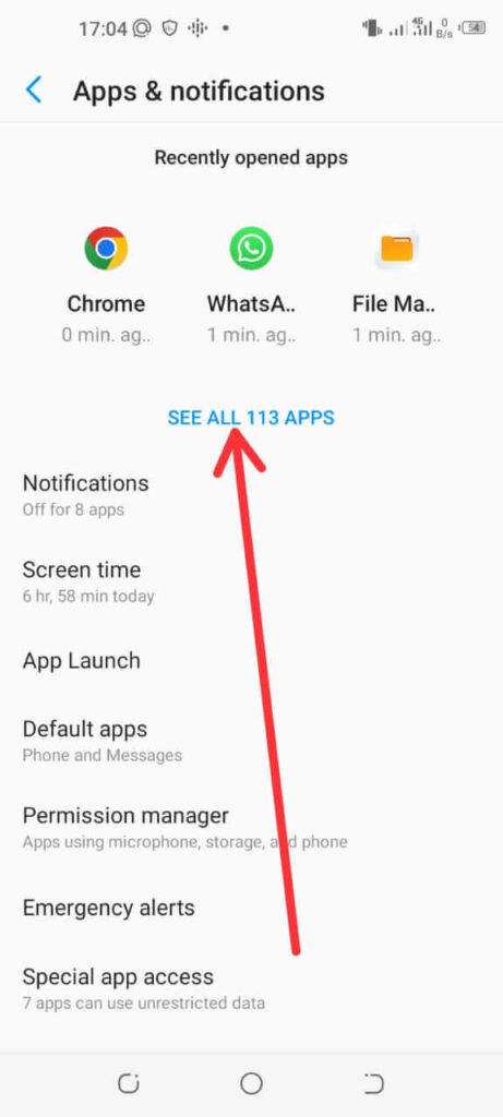 • Go to Settings > Apps & notifications > SEE ALL XX APPS.