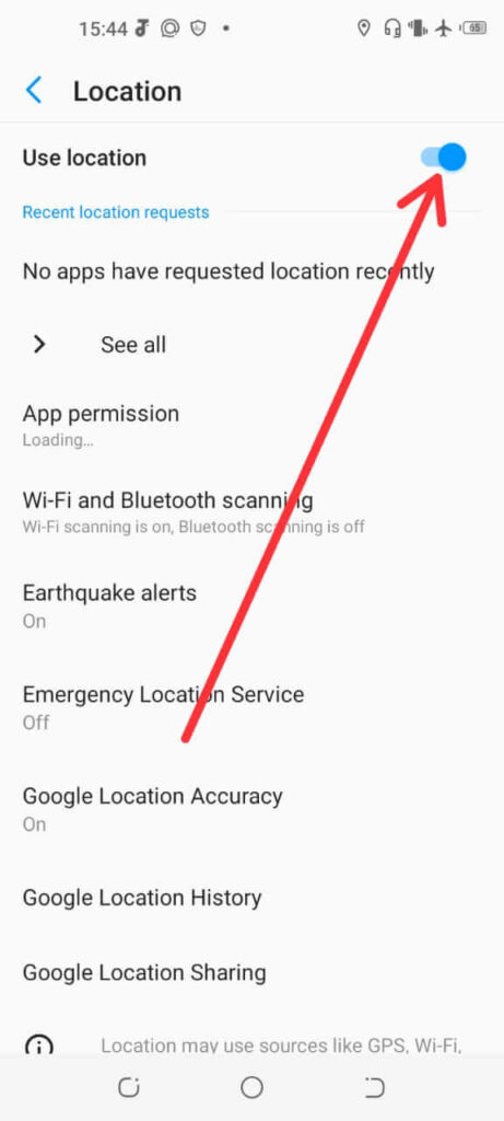 Tapping on the Location option will bring up the location settings, where you can toggle the switch to turn off location services for all apps or select specific apps that do not need location data.