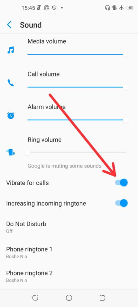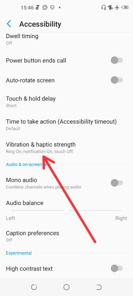 • Tap on Vibration & haptic strength and drag the sliders to the left for Touch feedback and Ring Vibration.
