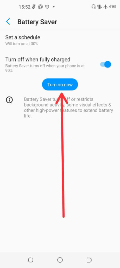 • You can also set a schedule for battery saver mode to turn on automatically when your battery level reaches a certain percentage